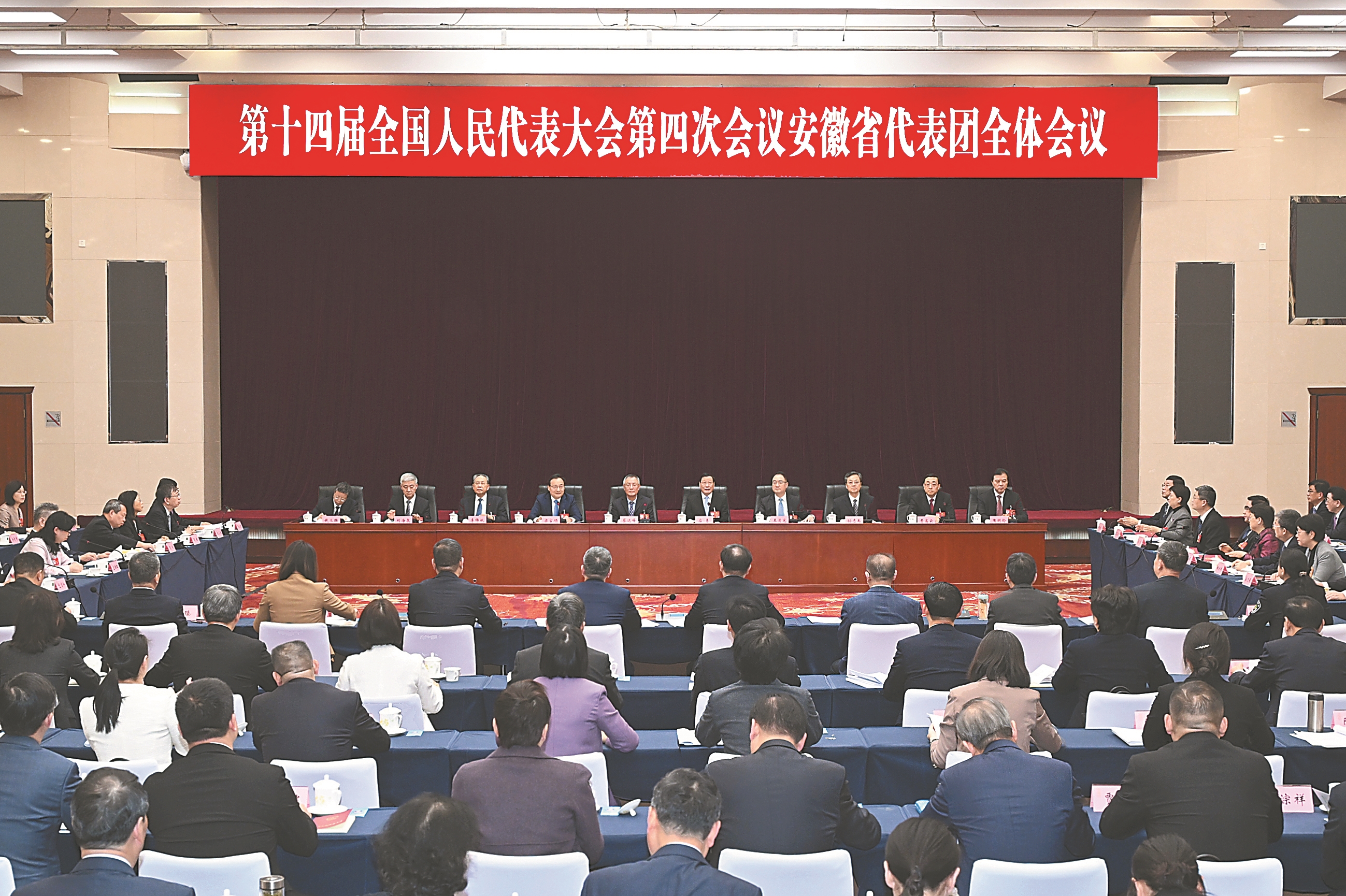 3月3日下午,出席第十四届全国人民代表大会第四次会议的安徽代表团在北京成立,并举行全体会议。本报记者杨竹摄