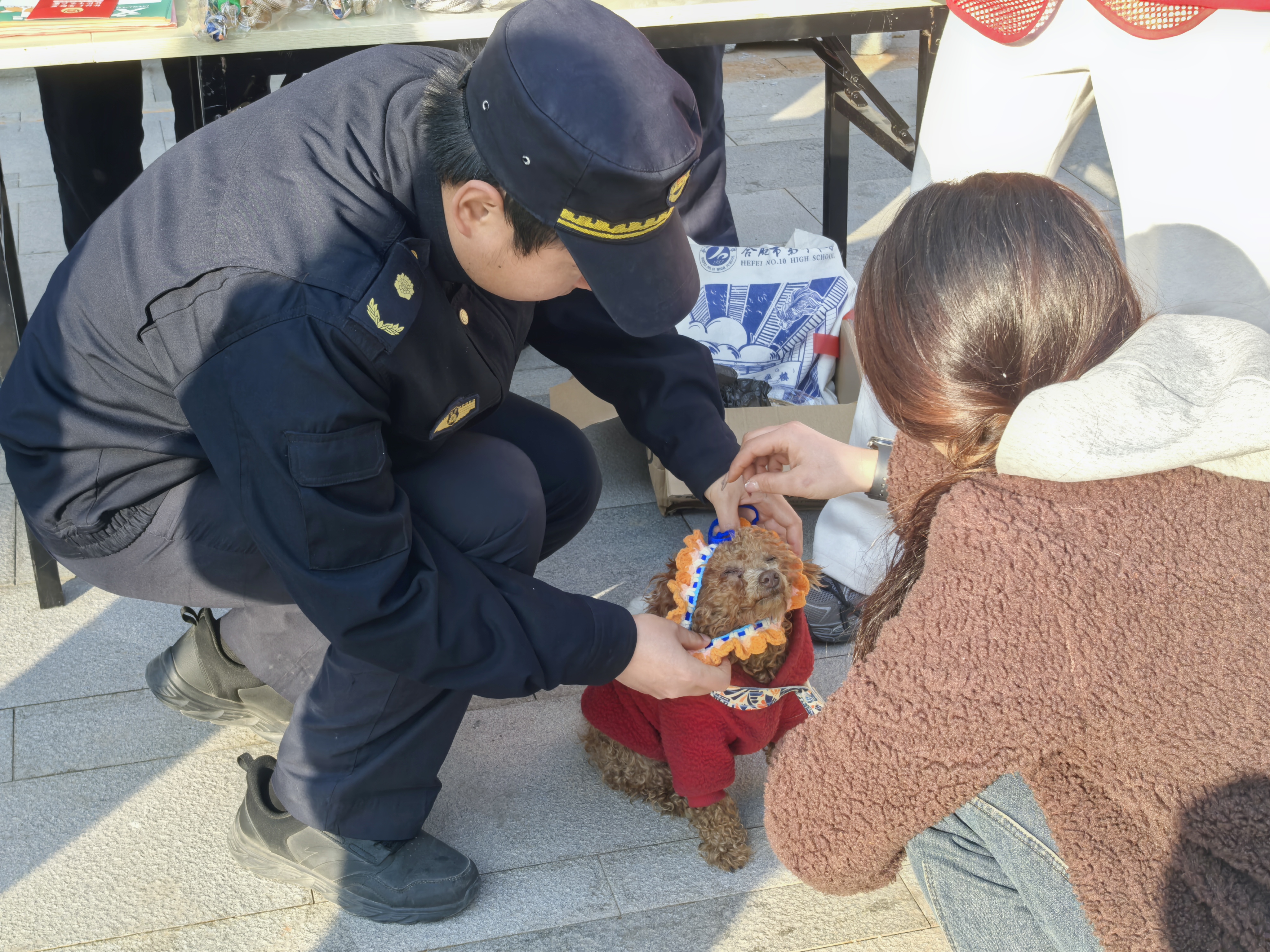 本网讯(记者 徐奥萍通讯员周增)“哇,这小围巾也太精致了吧!我们家毛孩子戴上肯定超好看!”“城管同志也来帮忙啦,以后遛狗必须牵绳、随手清粪,不能给咱社区环境添麻烦!”1月16...
