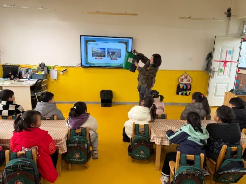 3月5日,淮北市烈山区第二幼儿园把垃圾分类知识搬进课堂,用生动有趣的方式,为孩子们送上绿色环保的“开学第一课”。