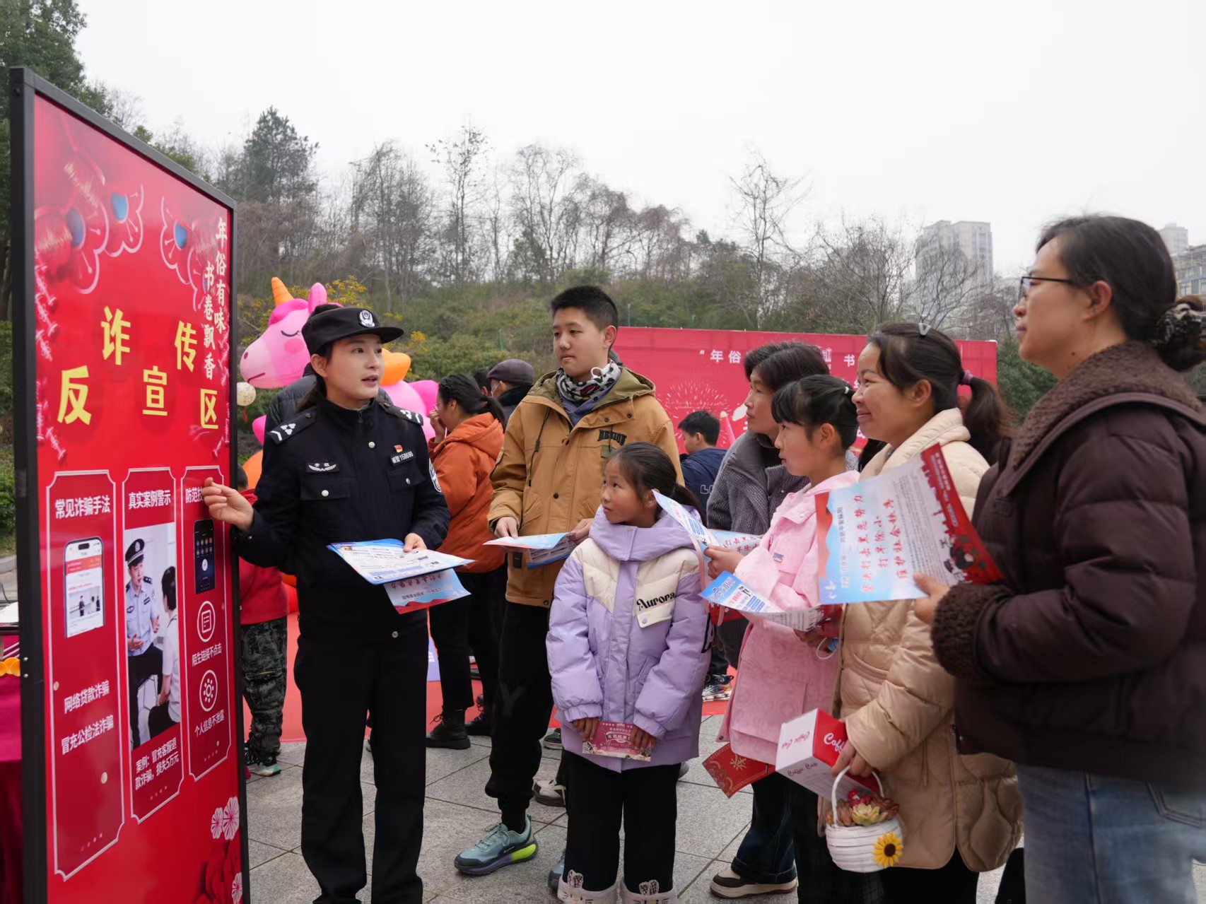 3月3日上午,枞阳县公安局民警辅警在县图书馆开展“新春闹元宵反诈平安行”主题活动,宣传反诈知识,筑牢平安防线。(陈浩)