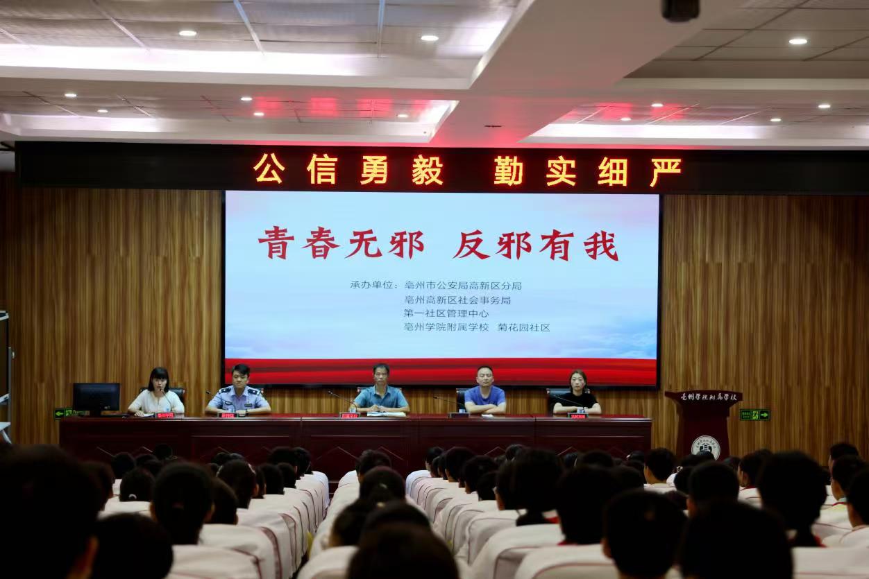 为进一步增强辖区青少年学生识邪、辨邪、拒邪、防邪的意识和能力,9月13日,亳州市公安局高新区分局联合高新区社会事务局、第一社区管理中心等部门,深入亳州学院附属学校开展“青春无邪,...