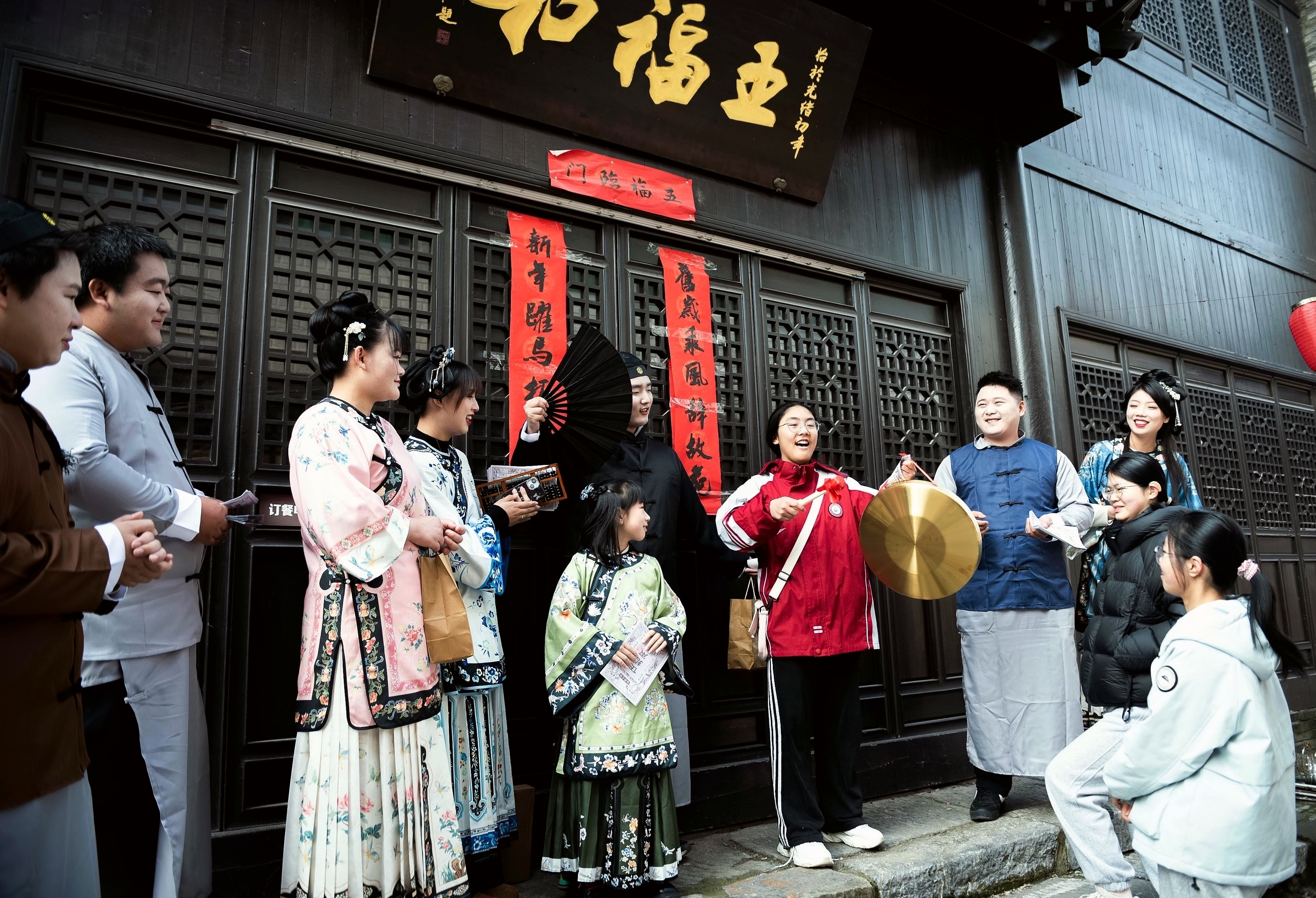 2026年3月21日,含山县运漕镇举办“千年漕运古镇・梦回水乡商埠”沉浸式互动演艺活动。游客通过漕帮搬工、卢小姐招工、当铺典当、客栈下棋等环节,逛古街市集、赢银票好礼、淘古镇好物,感...
