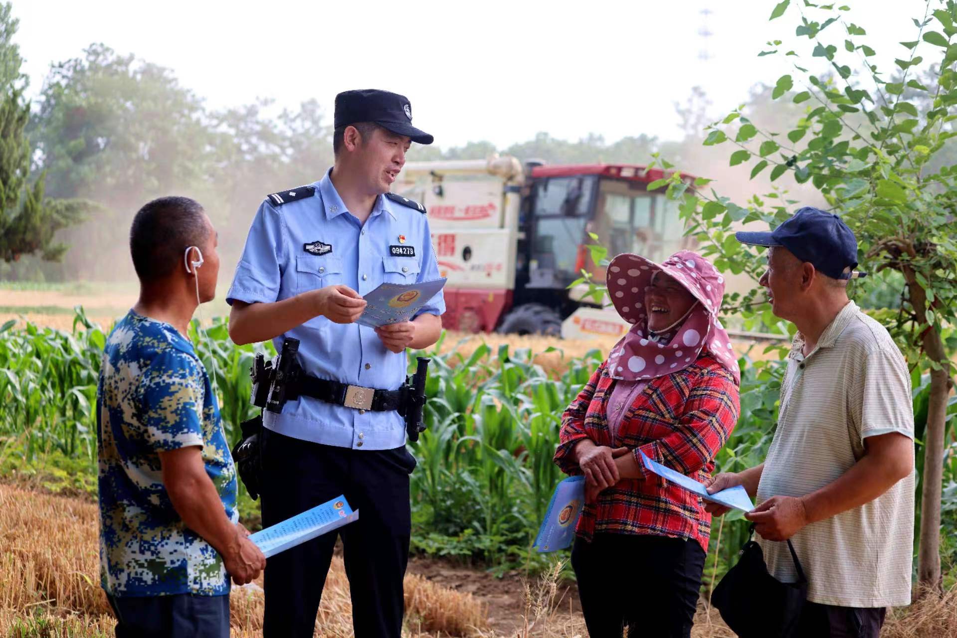 5月28日下午,该局民警辅警走上田间地头,向正在劳作的农民群众讲解防范电信网络诈骗、预防火灾事故、禁止烟头随意丢弃、防溺水等安全知识,同时提醒农机驾驶员注意农机检查保养、规范操作。(王威 董璇 记者 常振龙)