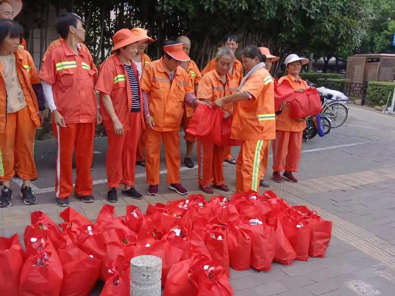 “我们采购了防暑降温物品,做好高温条件下一线作业职工的关心关爱和服务保障工作,维护好他们的高温权益,确保广大户外劳动者安全度夏。”包河区城管局工会主席王宏燕介绍,今年包河区总工会拨付给区城管局夏季送清凉专项资金20万元,全部用于购置高温慰问用品,用于慰问全区坚守在一线的环卫、绿化和市政管养、城管作业人员。