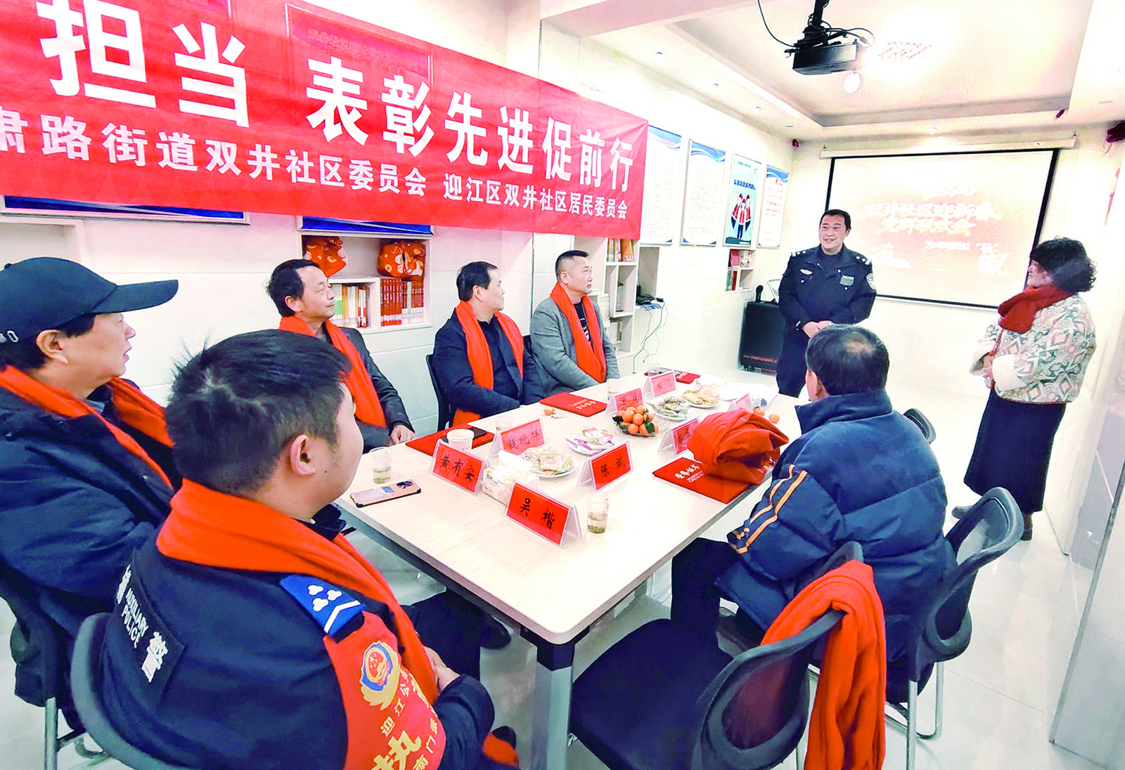 1月13日下午,安庆市迎江区双井社区党群服务中心举行表彰活动,对去年基层建设中涌现的优秀网格员、志愿者及平安守护者予以表彰。此次活动既是对先进典型的肯定激励,更是凝聚人心的新起点。该社区将继续坚持 “党建引领、多元共治”,完善基层治理体系,发挥典型示范作用,推动社区治理服务再上新台阶。(通讯员 黄有安 徐永 摄)