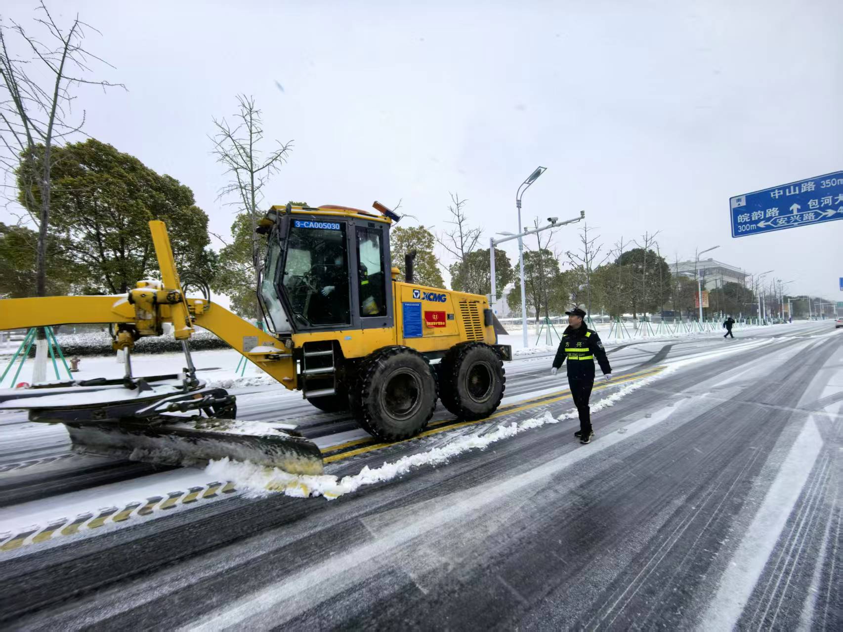 大队严格遵循“先桥梁匝道、后主次干道,先核心区域、后普通路段”的作业准则,精准划定保障范围,将安徽路、紫云路等辖区主干道沿线及学校周边等人员密集区域列为核心保障点位。组建30人应急突击队,严格落实“定人、定车、定路、定时”四定工作机制,划分重点责任片区,明确包保职责,构建起“责任全覆盖,管控无死角”的工作格局,实现道路管护专人负责、设备运转高效有序。