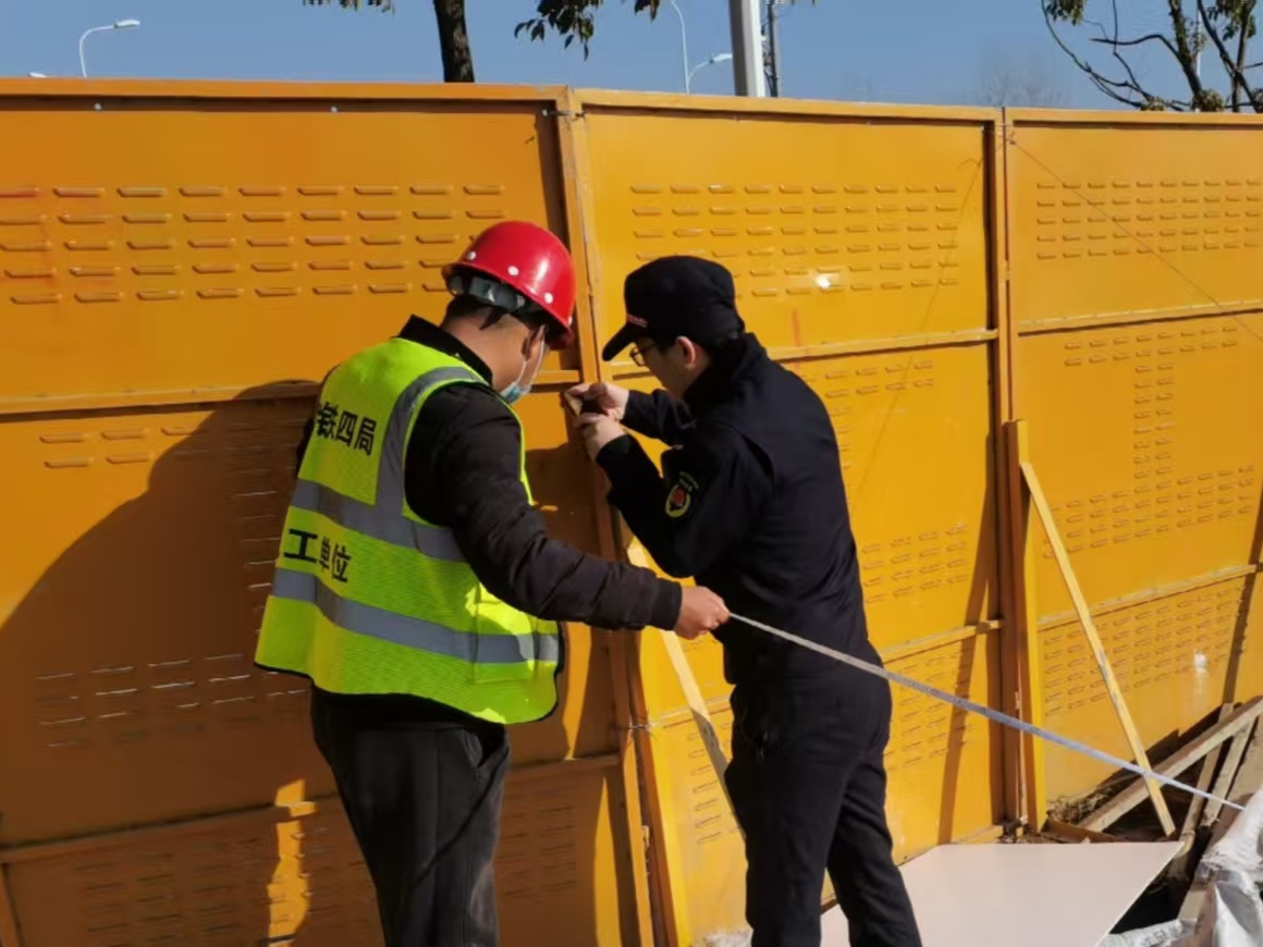 “渣土堆放不得超出规定红线,裸土必须全覆盖绿网,未覆盖区域要设置明显警示标识。”在包河区黄河路某在建工地内,城管执法队员正在督促工地落实安全管控措施。执法队员结合在建工地安全检查的规范要求,深入在建工地施工现场,重点查看基坑积水情况以及周边防护栏杆、警示标识等是否设置规范、围挡设立是否符合规范、围挡有无倾斜、松动等安全隐患以及现场有无超高、超红线堆放情况,同时要求施工方针对冬季低温天气,及时清理作业区域积雪积冰、铺设防滑垫。近一周,大队已对辖区内16个在建项目开展专项检查,有效防范施工安全与扬尘污染风险。