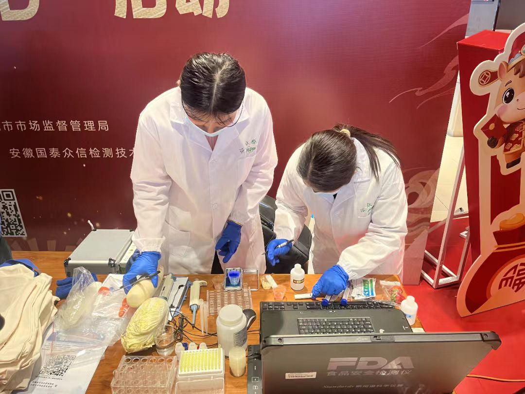 为有效缓解市民对食材安全的顾虑,活动现场还专门设立快检区,第三方检测机构携带便携式快检设备,为群众提供食用农产品农兽药残留、非法添加等项目的免费快检服务。市民可以现场送检自带食材,也可以指定超市内的食品进行检测,二十分钟左右出结果,实现“即时检、即时知”。活动当天共快检白菜、萝卜、草莓等食品12组,检测结果均合格,已及时告知送检市民,暖心服务为采购年货的市民当场送上“定心丸”。