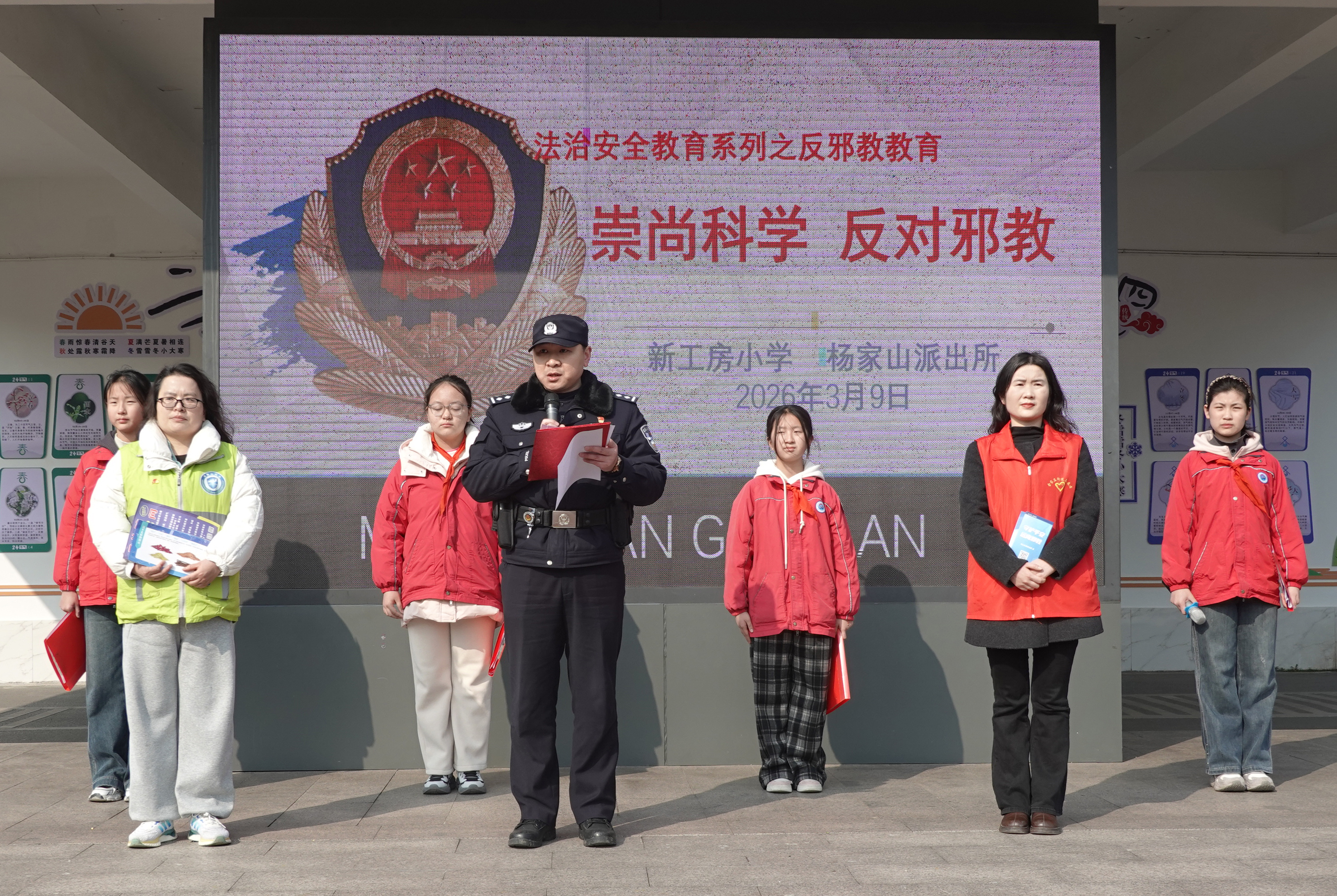 2026年3月9日,马鞍山市花山区金家庄街道综治中心联合杨家山派出所、新风社区,在新工房小学开展“平安法治第一课”宣讲活动。