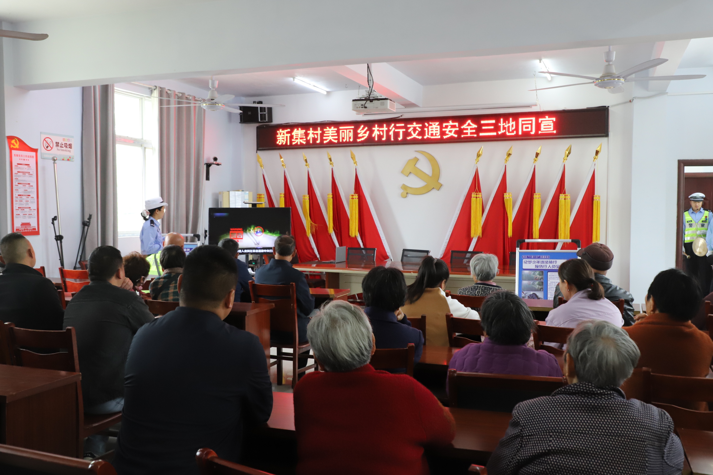 活动现场,交警结合农村地区交通特点,利用多媒体设备播放典型交通事故案例视频,直观展示交通违法行为的严重后果。同时,为增强宣传趣味性,活动中设置认识交通标志互动有奖环节,邀请村民上台指认民警出示的交通标志是什么?答对的有奖,现场村民踊跃参与,在互动中加深了对交通标志的认知。