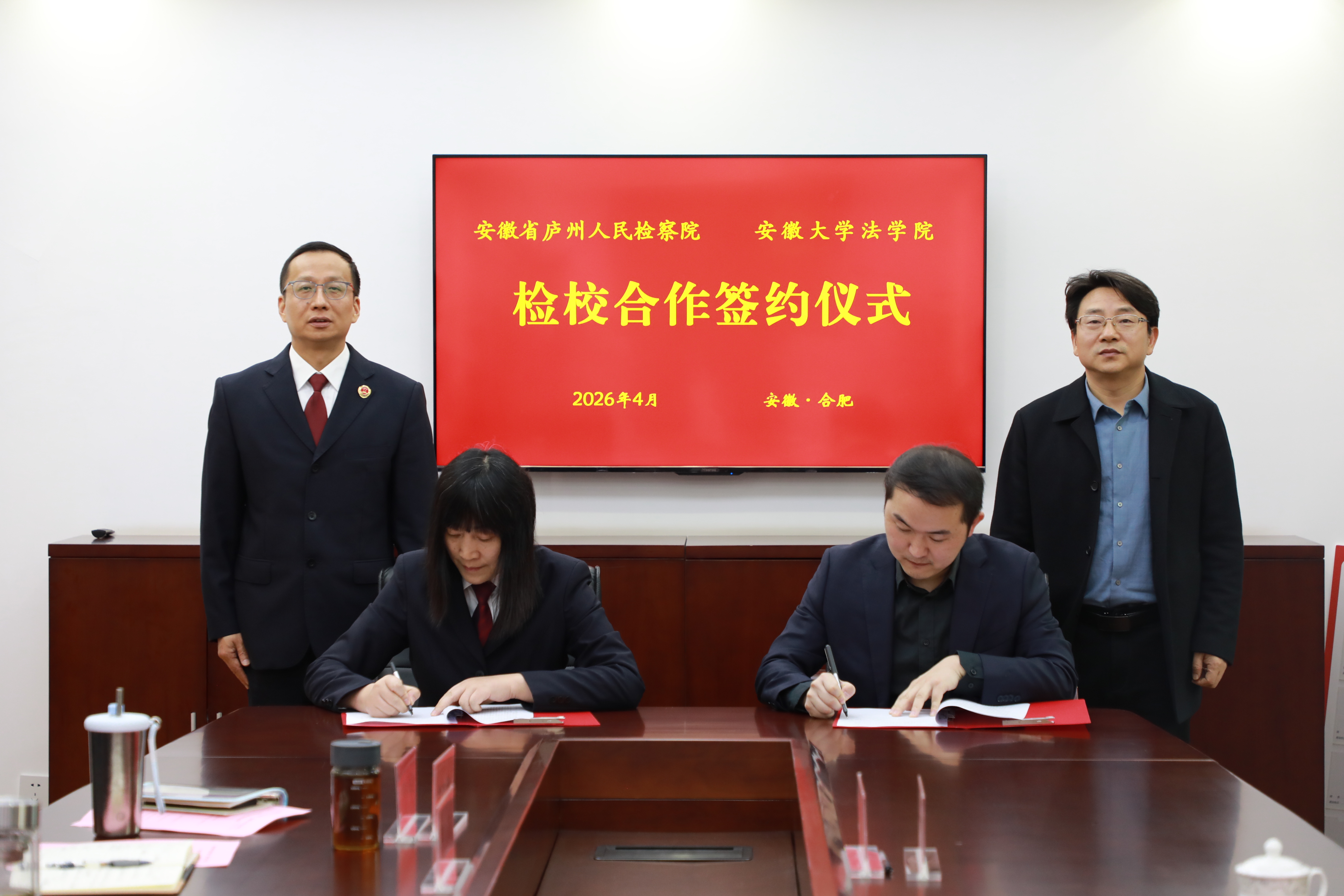 随后,庐州检察院副检察长汪婷与安徽大学法学院副院长储陈城分别代表双方签署检校合作框架协议,明确了理论研究、人才培养、实践教学、资源共享等合作方向,这也标志双方合作进入制度化、常态化新阶段。