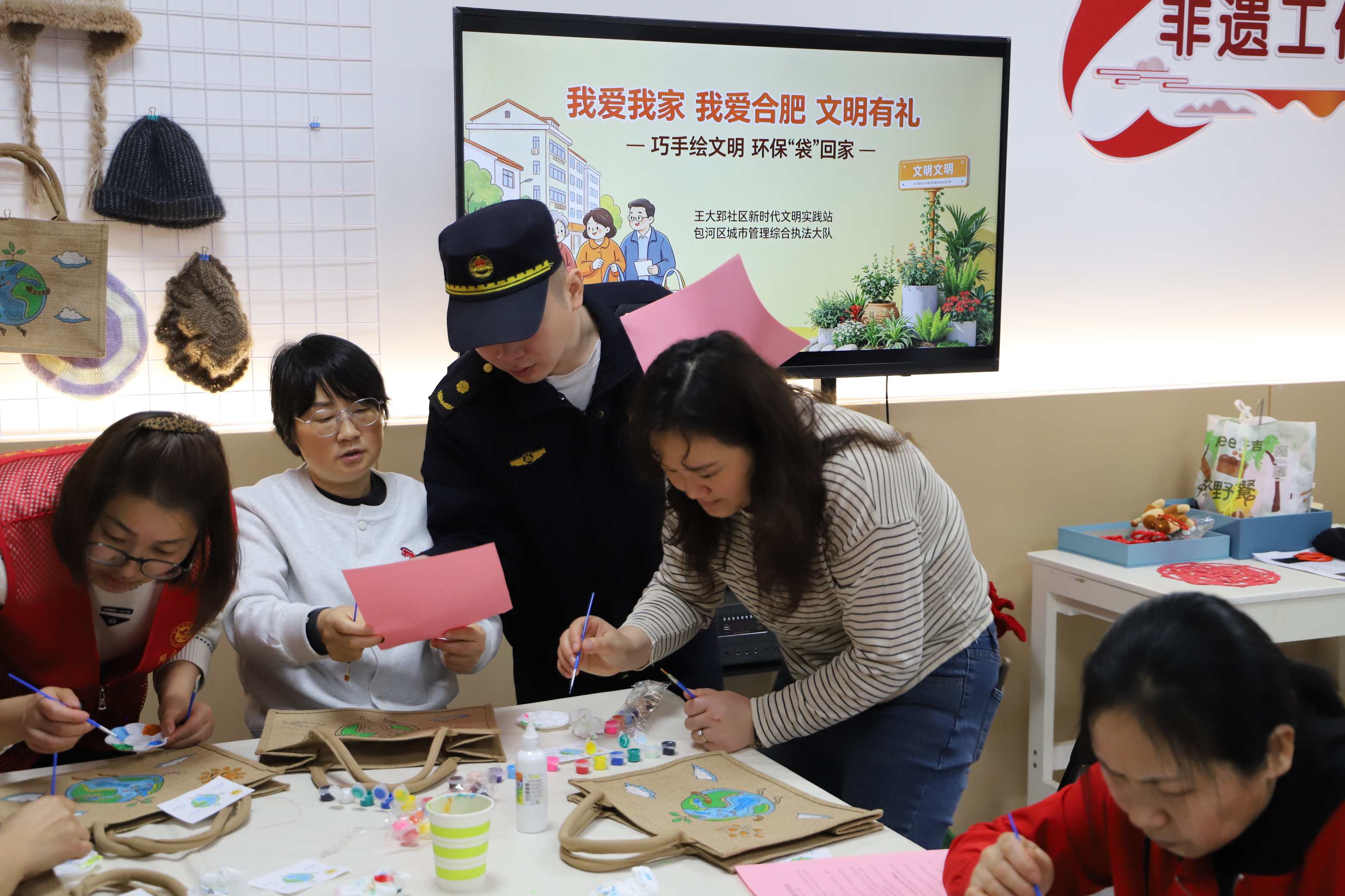 本网讯(记者 徐奥萍 通讯员 周增)4月22日将迎来第57个世界地球日。4月20日,合肥市包河区城管综合执法大队联合王大郢社区,在社区非遗工作室共同举办“巧手‘绘’文明 环保‘袋’回家”手工DIY环保袋及垃圾分类宣传活动,邀请辖区居民齐聚一堂,依托非遗工作室的文化氛围,在趣味互动中学习环保、垃圾分类知识,以实际行动迎接世界地球日,推动环保、垃圾分类意识扎根人心、融入日常。